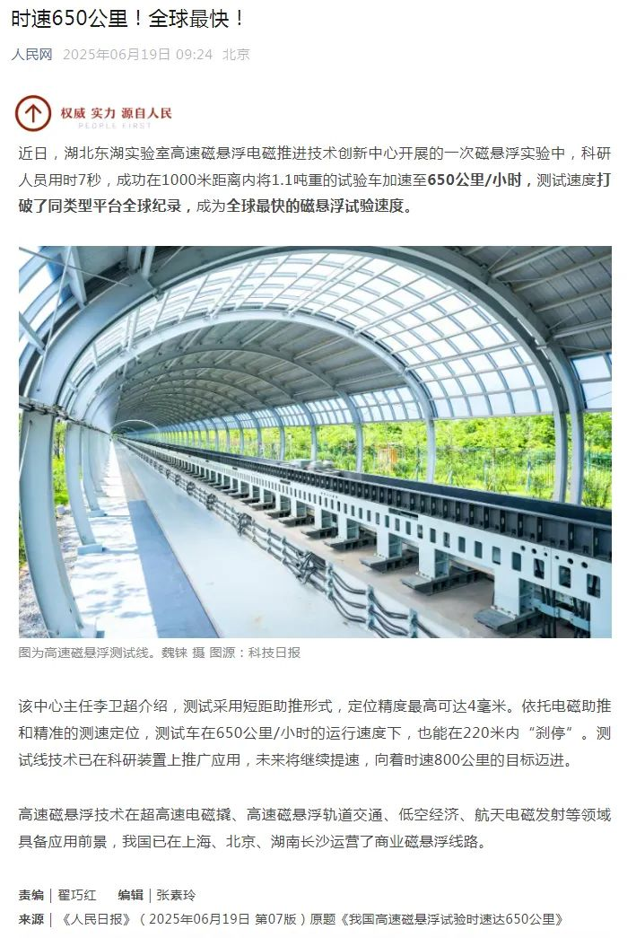 湘電助力高速磁懸浮7秒飆出全球新極速:650公里時(shí)速創(chuàng)紀(jì)錄!